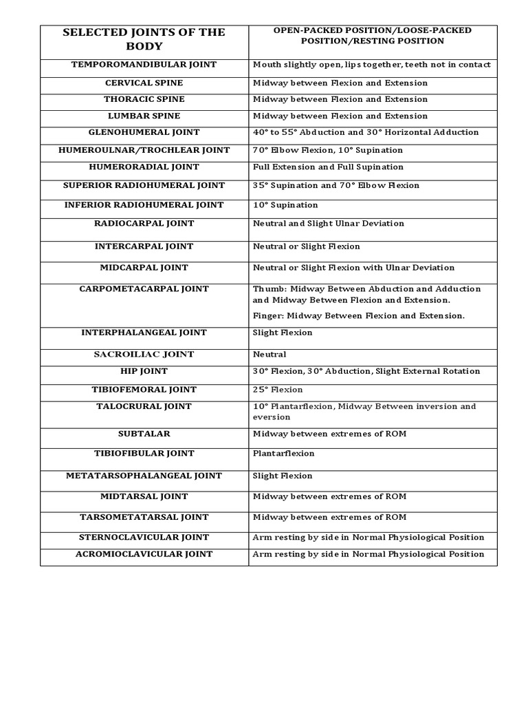 Open and Closed Packed Positions of Joints Anatomical Terms Of Motion Open Packed Position since the joint has the most available room for movement, mobilizations are best tolerated in this position. Learn about why we should know these, what. in this video, idelve into the fascinating world of biomechanics,. A position of 2 articular surfaces relative to one another in which there is less than maximal joint. stop the confusion! . Open Packed Position.